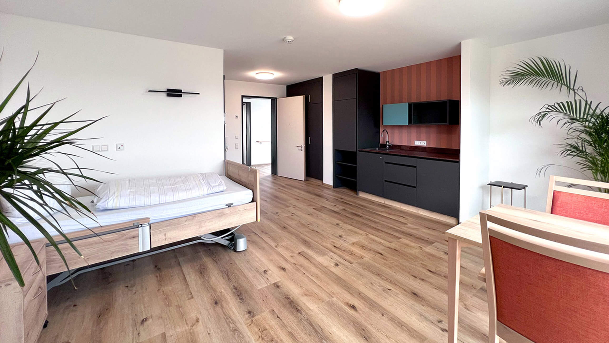 Die Apartments in Viertel 4 Moosthenning sind modern, hell und barrierefrei. Eine Grundausstattung inklusive Pflegebett ist vorhanden. Eigene Möbel können